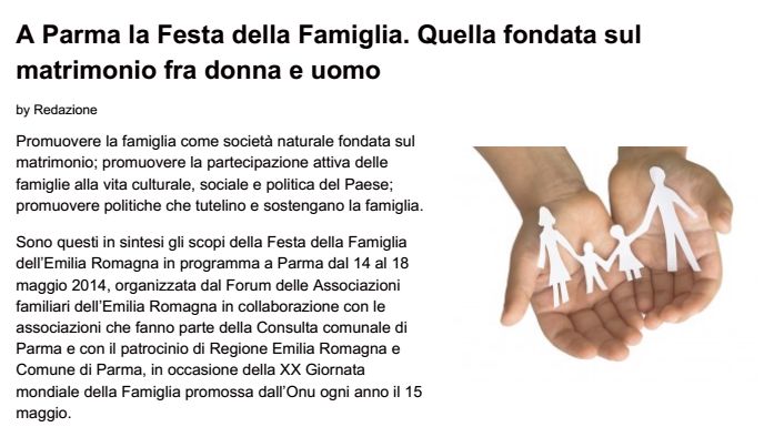 A Parma la festa della Famiglia.Quella fondata sul matrimonio tra uomo e donna da Parmaquotidiano del 19-04-2014
